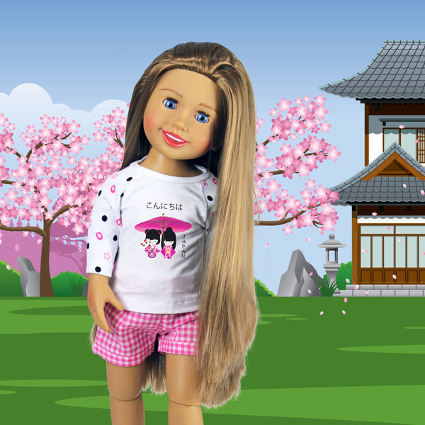 Alexis has moved her adventure from Brazil to Japan and wants to share all the fun with you.  This outfit reflects the outfit Alexis wears in her book, "Moving to Japan."  We added a little more fun to the sleeves...